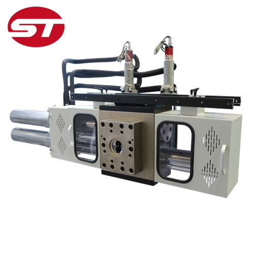 雙柱四工位反沖洗液壓換網(wǎng)器用于化纖、吹膜、平膜、流延膜、管材、板材、線材、纖維的制造,切粒,回收造粒等。